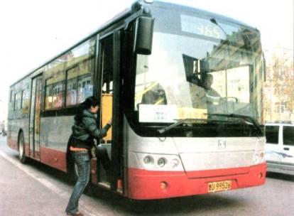 新型环保公交车开上路Yd9404 投入365路和228路等线路 车身加长比原来多载30名乘客 |