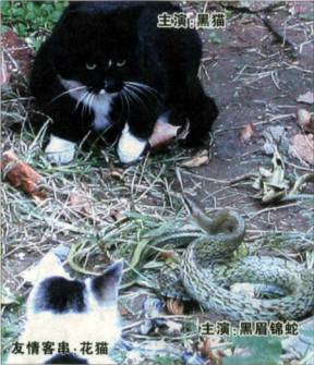 黑身白爪猫 大战 1.6米长蛇 (今晨6点记者 王铁 摄影报道) |