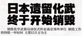 中国政府一直在日本遗弃在华化学武器问题上与日方进行交涉。上世纪末,中日两国签署了《关于销毁中国境内日本遗弃化学武器的备忘录》。该备忘录的签署,标志着日本政府正式承认在中国存在有原来日军遗弃的化学武器;并且至少在形式上承诺要开始履行《公约》所规定的有关化武遗弃国应承担的义务。 |